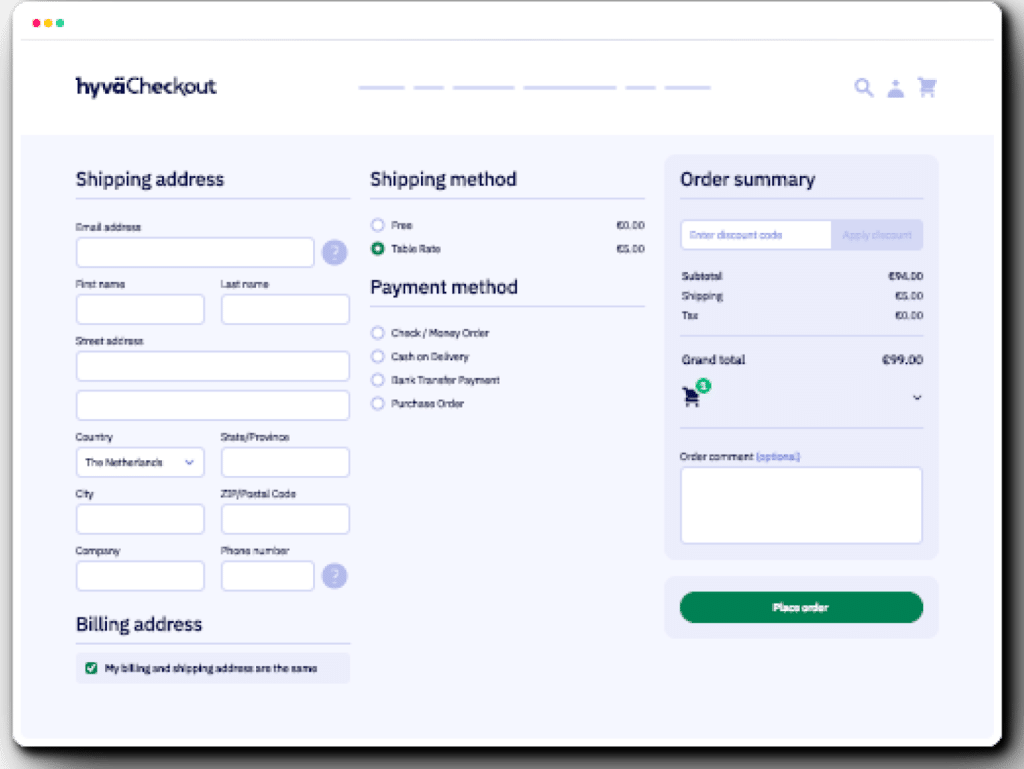 Addressing the often challenging aspect of checkout for online stores, Hyvä Checkout employs a blend of industry best practices and advanced technology to streamline the process for all stakeholders:
