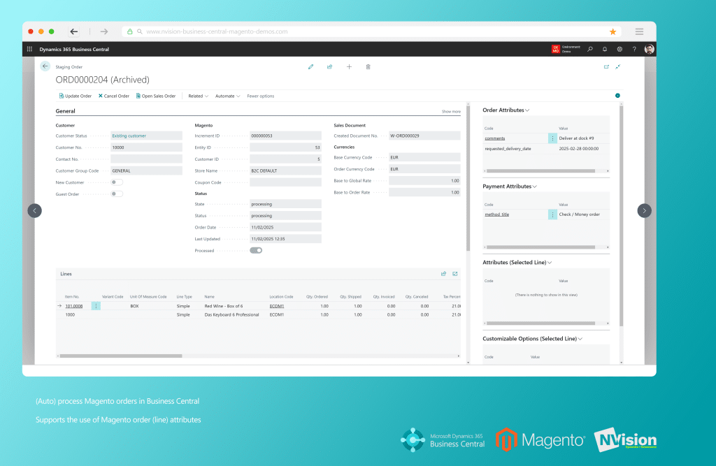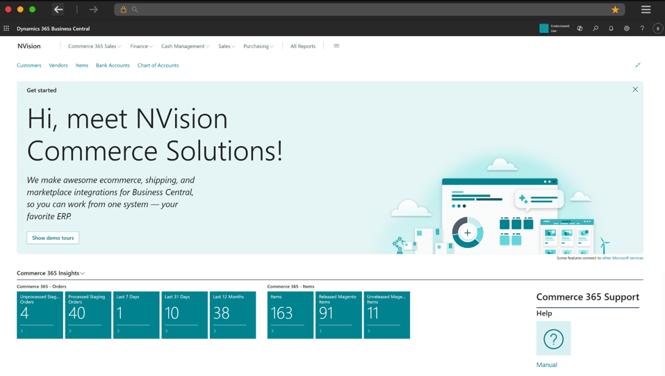 NVision Commerce Solutions is a Microsoft Dynamics ISV dedicated to helping merchants run their entire business as one connected system. With Commerce 365 for Magento, NVision bridges Microsoft Dynamics 365 Business Central (BC) and Magento / Adobe Commerce / Hyvä, enabling merchants to synchronize every key operation—products, pricing, inventory, customers, and orders—between ERP and storefront.