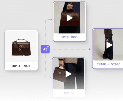 Studio-quality video production, at AI Scale. Generate high-quality product videos from images using AI – fast, consistent, and ready to publish across your site with a single click.
